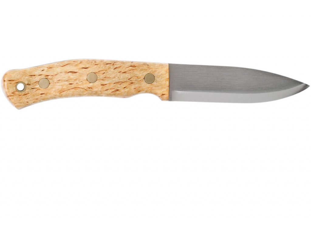Tento skvělý nůž je vyroben jako víceúčelový nůž pro lov, bushcraft a další použití v přírodě při kempování. Čepel nože je dlouhá 10 cm a je vyrobena z 3,8 mm silné rakouské uhlíkové oceli s vysokým obsahem uhlíku (Sleipner z Uddeholmu) a tepelně zpracována tak, aby bylo dosaženo tvrdosti 58-60 HRC. Nože jsou broušené plochým skandinávským výbrusem a mají saténový povrch. Díky této oceli v kombinaci s broušením jsou tyto nože velmi silné při řezání, avšak velmi snadno se brousí a mají vynikající ostrost.