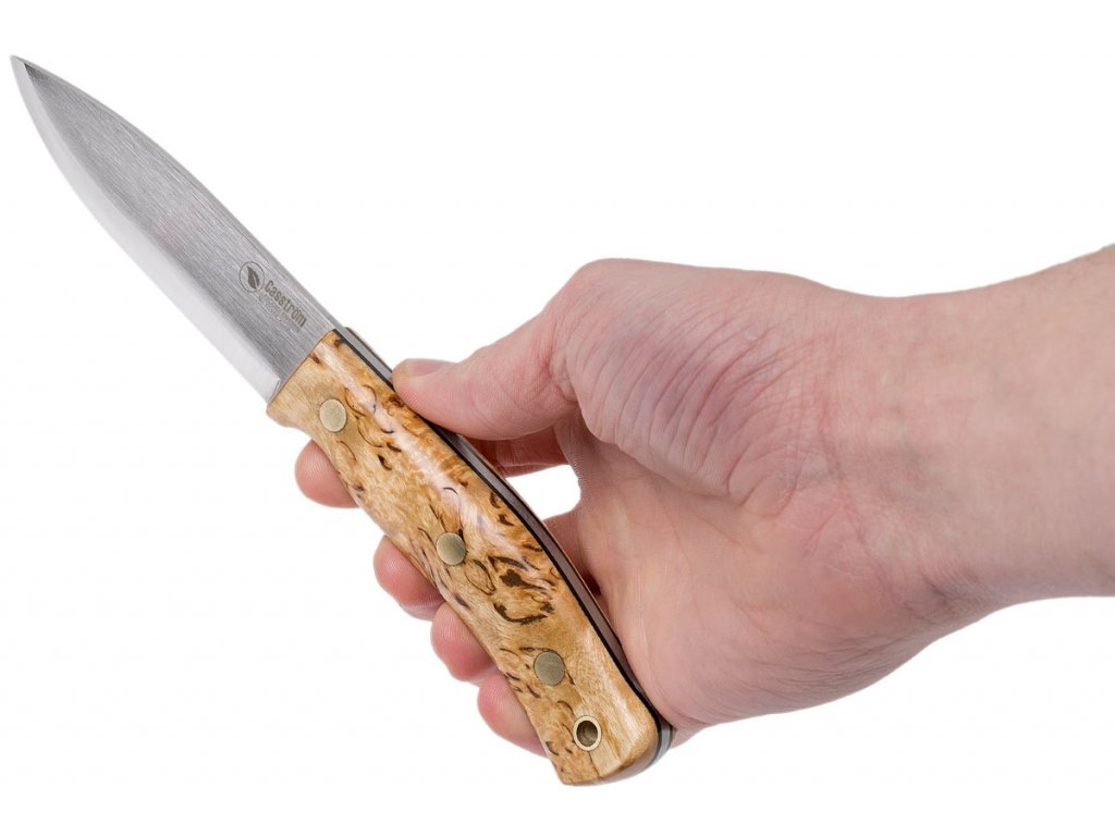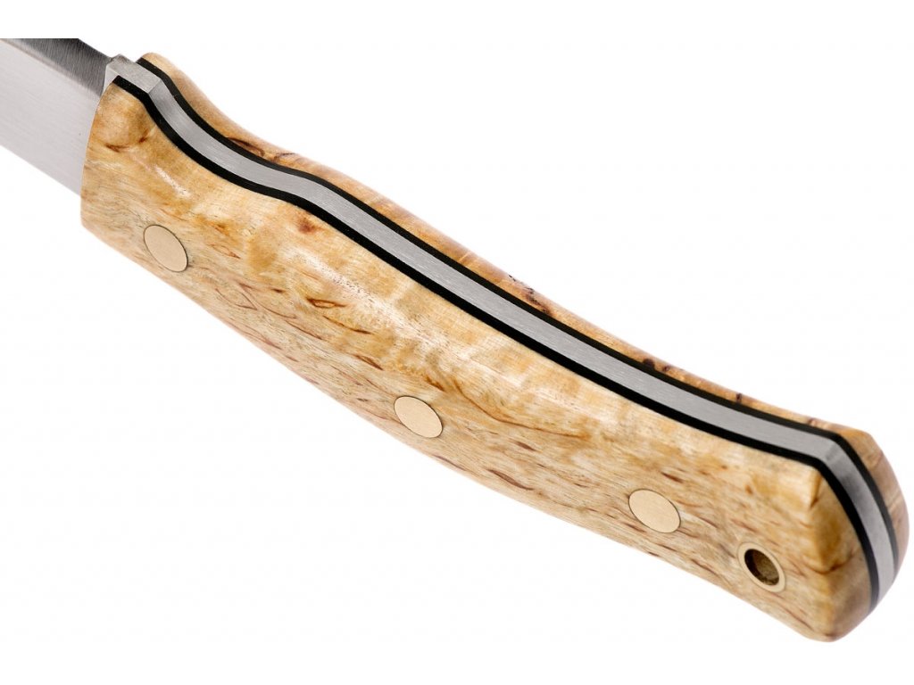 Rukojeť je k dispozici v provedení Classic Oak, Curly Birch nebo Green Canvas Micarta. Mezi stupnicemi rukojeti a ocelí jsou černé vložky, které zvyšují odolnost v průběhu času a pnutí v rukojeti. Dřevěná rukojeť je ošetřena tradičním skandinávským lakem na bázi lněného oleje.