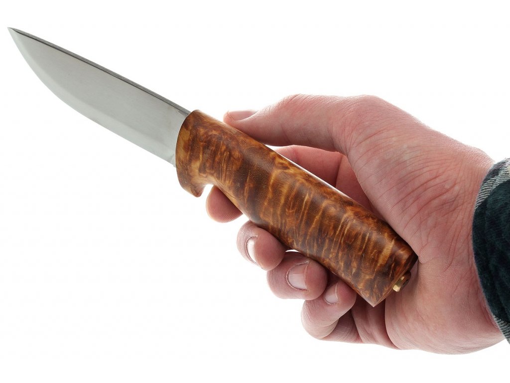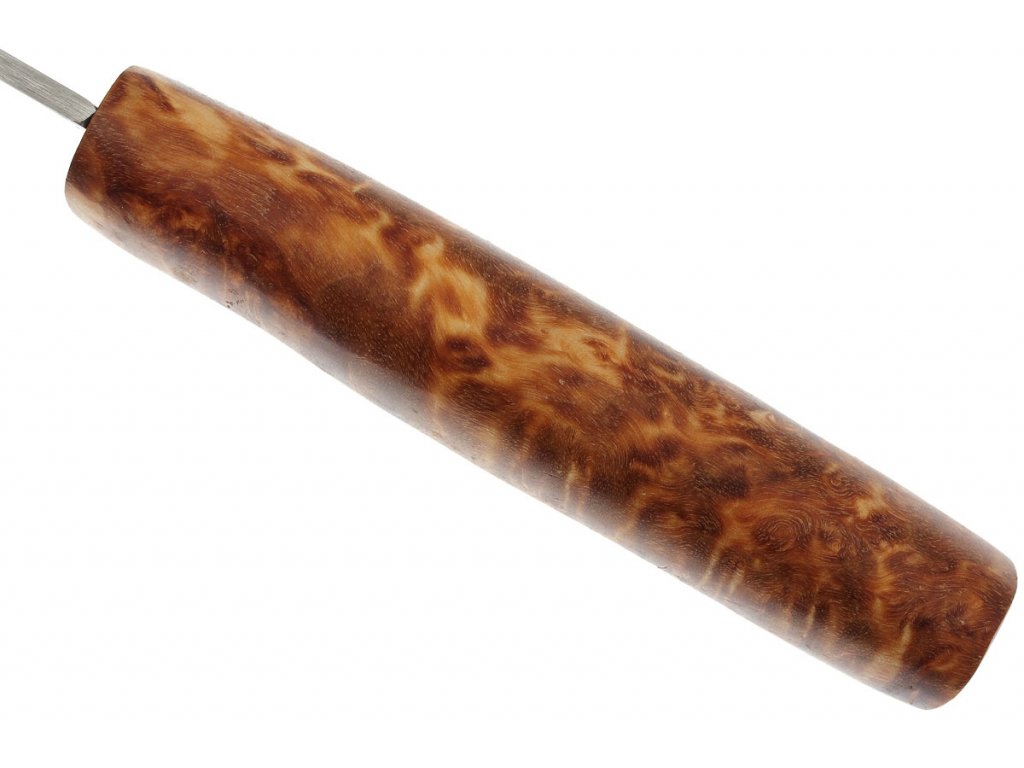 Rukojeť je vyrobena z krásného strukturovaného březového dřeva známého jako Curly Birch. Rukojeť je ručně tvarovaná, leštěná a olejovaná, což jí dodává jedinečný charakter.