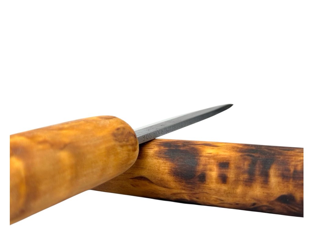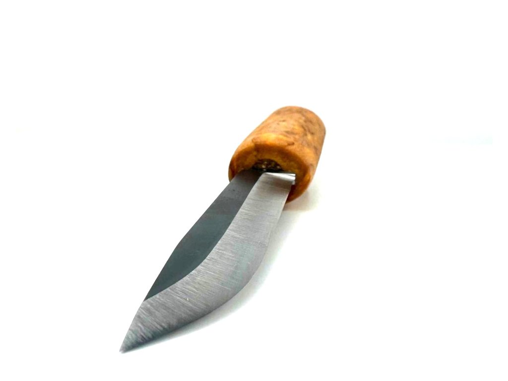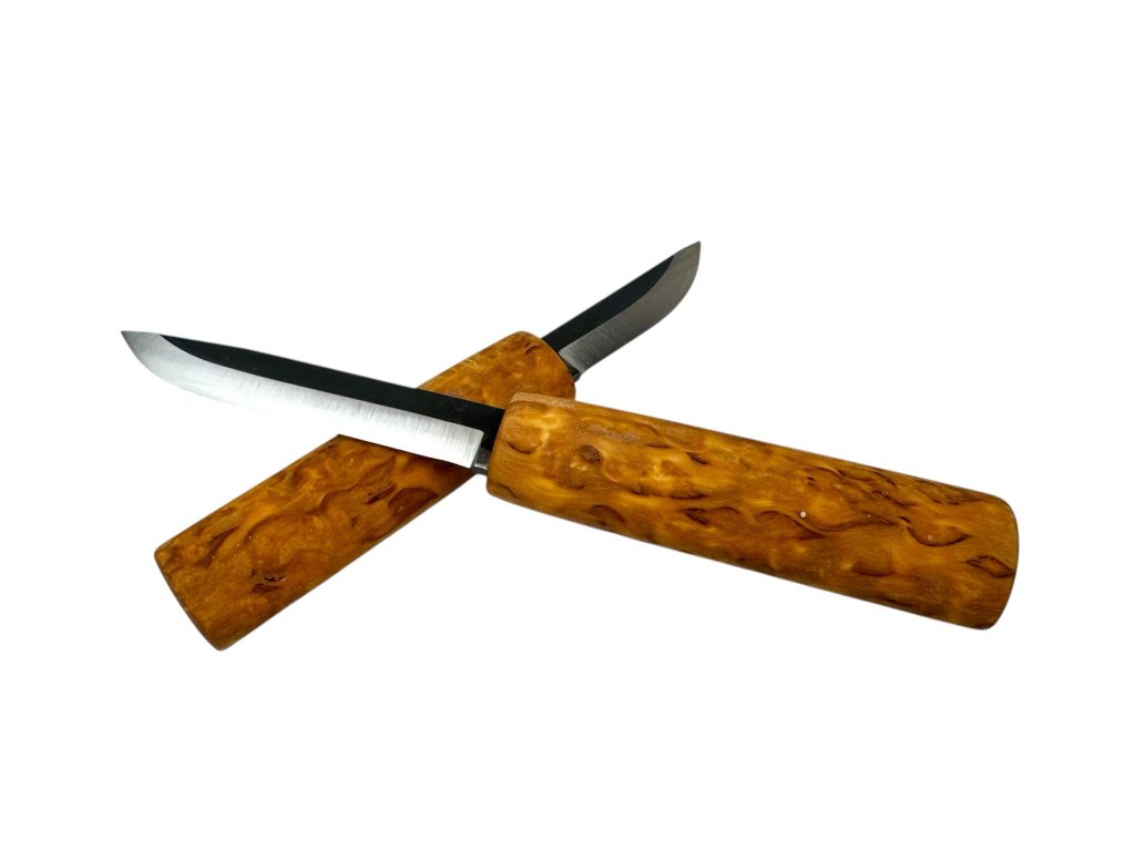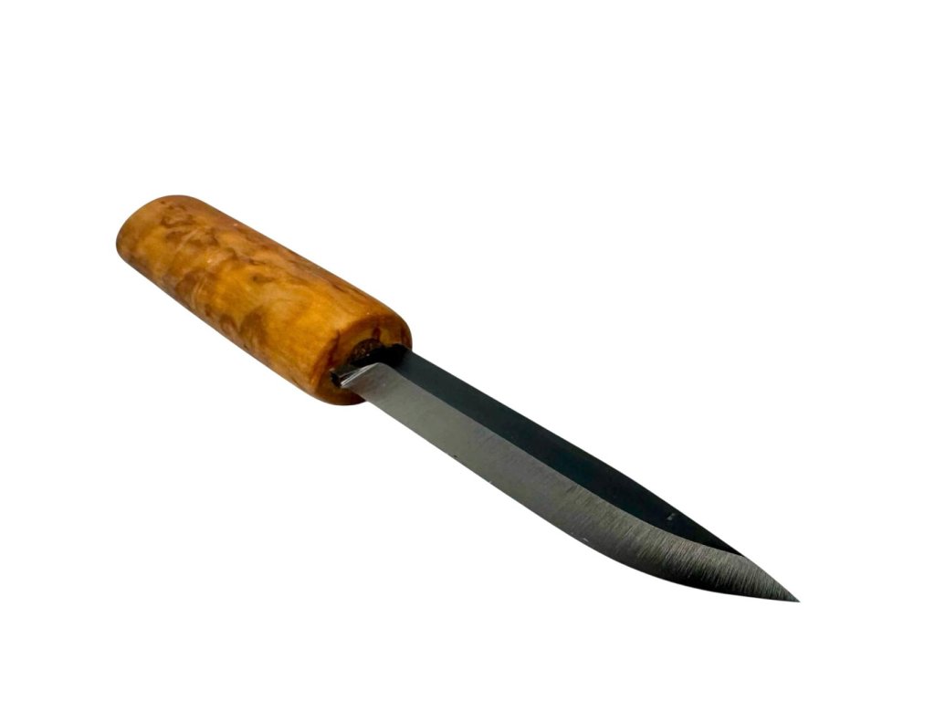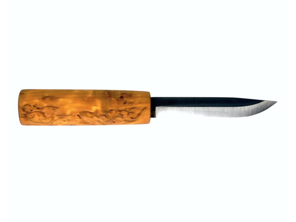 Rukojeť z curly birch (kudrnaté břízy) o délce 4 "(105 mm) je ošetřena lněným olejem. Povrchová úprava je drsná a se škrábaným povrchem. Zajišťuje skvělou přilnavost v ruce při všech činostech, ke kterým jsou severské nože Puukko určeny.