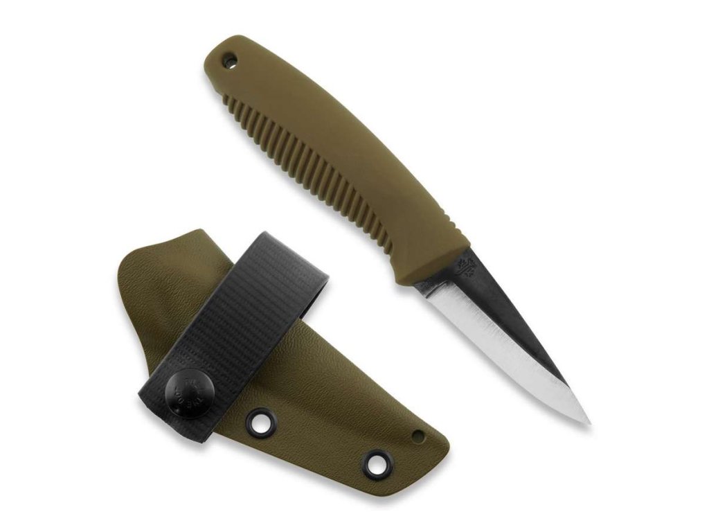 Nůž Peltonen M23 zapadá do stávajícího konceptu společnosti: osvědčená TPE pryžová rukojeť s kompaktní a všestrannou čepelí Skandi a plochým pouzdrem. Malý a lehký všestranný pomocník s ergonomickým designem. Ideální pro řezbářské práce a perfektní pro nošení na krku nebo vodorovně na opasku. Čepel s celoplošnou čepelí z uhlíkové oceli 80CrV2 - indukčně kalené ostří na HRC62.