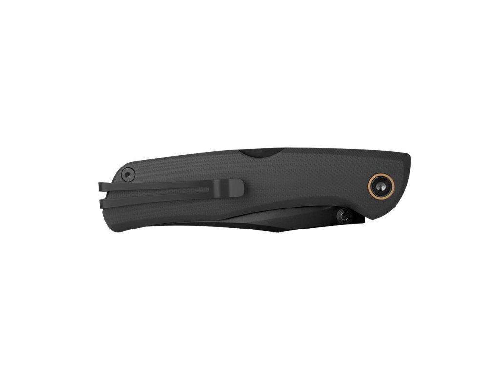 Čepel z nerezové oceli Sandvik 12C27 nabídne vyvážený poměr tvrdosti a snadného broušení, což z něj dělá skvělou volbu pro každodenní použití i víkendové výpady do divočiny. Černá G10 rukojeť drží i v mokré ruce jako přibité, a díky hlubokému klipu zmizí nůž v kapse jako agent v utajení.