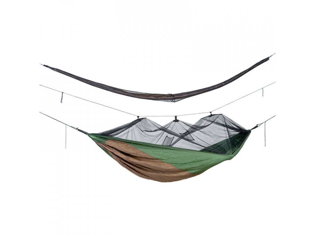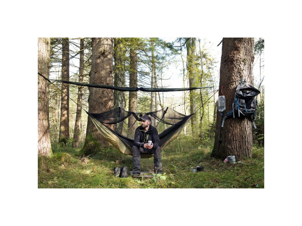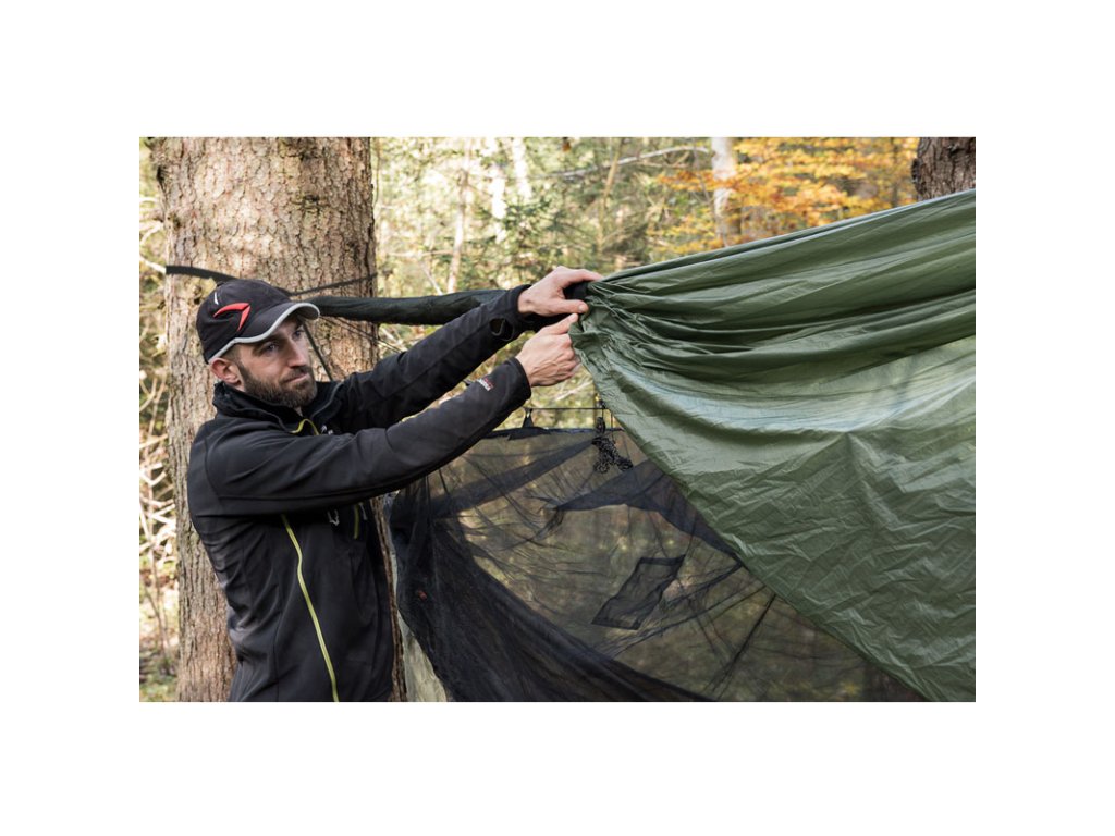 Měl jsem přibližnou představu o tom, jak se houpací síť staví, a také jsem hodně přemýšlel o moskytiéře a pláštěnce. Samozřejmě to všechno muselo být snadno přenosné - zde tehdy začaly první problémy. Kompletní sada se všemi potřebnými prvky byla na let příliš velká, takže jsem si musel materiál sehnat v Jižní Americe a vše si uplést sám. S pomocí našich průvodců z indiánského kmene Huaorani jsem postavil svou první houpací síť s ochranou proti komárům a stan s rozpětím jako ochranu proti dešti. Výsledkem je monstrum o váze určitě větší než 7 kg, se silnými dřevy, moskytiérou s otvory a pláštěnkou z tlusté igelitové plachty.