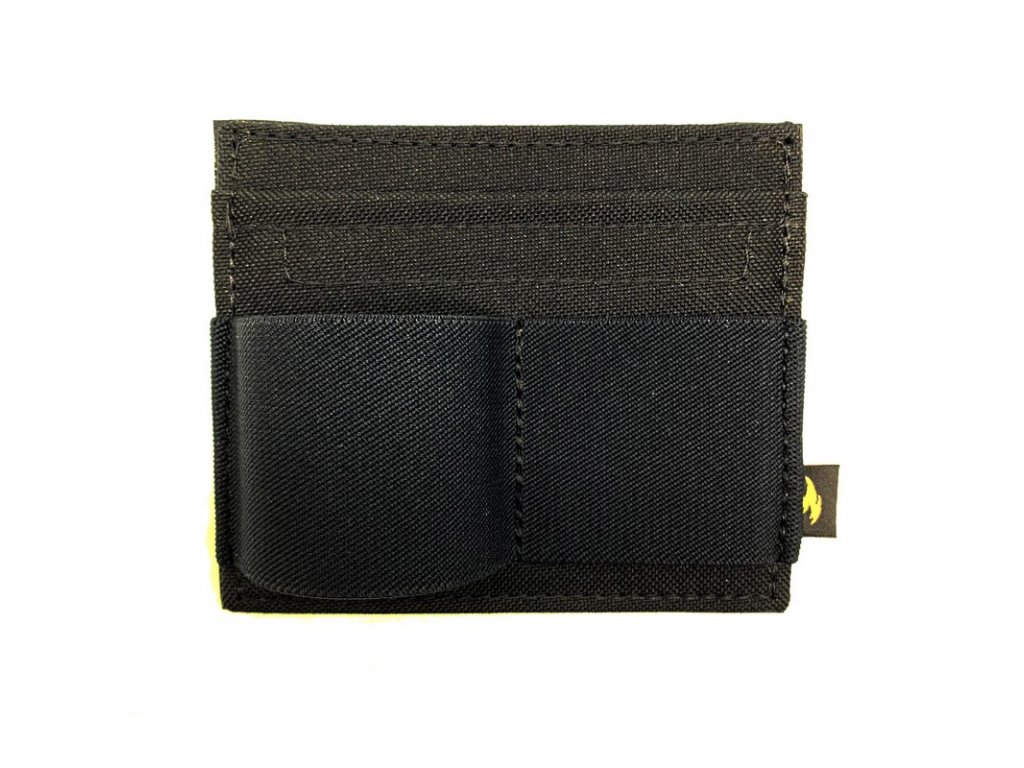 Velikost 120 x 105 mm.  Skrytá kapsa na doklady je uzavřená suchým zipem a slouží třeba pro uložení hotovosti včetně drobných, paměťové karty. Gumové pružidlo je na jednom místě víc a na druhém méně nařasené a tvoří tak dvě rozdílná úložná místa.