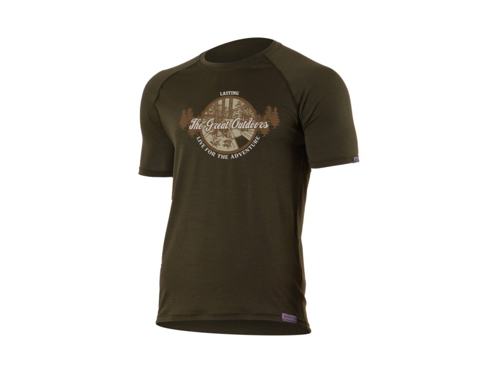 Pánské vlněné triko s potiskem, raglánový rukáv, jednovrstvý úplet. MATERIÁL: 100% MERINO VLNA, 160 g