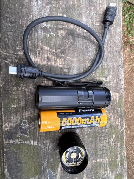 - Součástí balení je čelovka, nabíjecí USB-C kabel, Li-ion akumulátor typu 18650 s kapacitou 4000 mAh, náhradní o-kroužek.