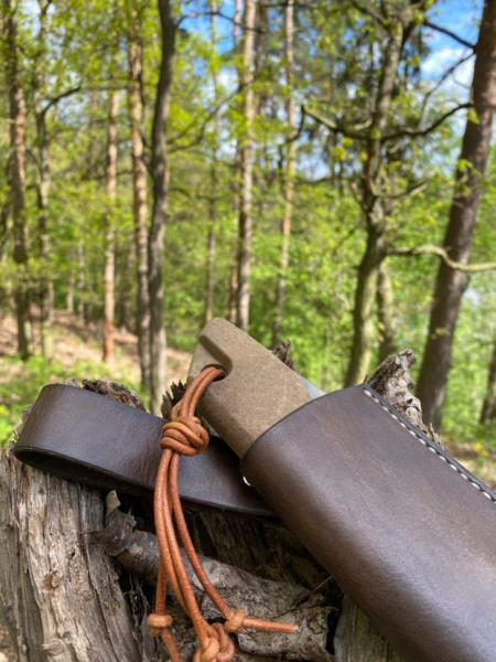 Nakonec jsem si pořídil Silky Gomboy 240 Curve Outback Edition – zlatou střední cestu mezi Pocket-boyem a Big-boyem. A k ní rovnou kožené pouzdro z naší dílny JuBö Bushcraft.