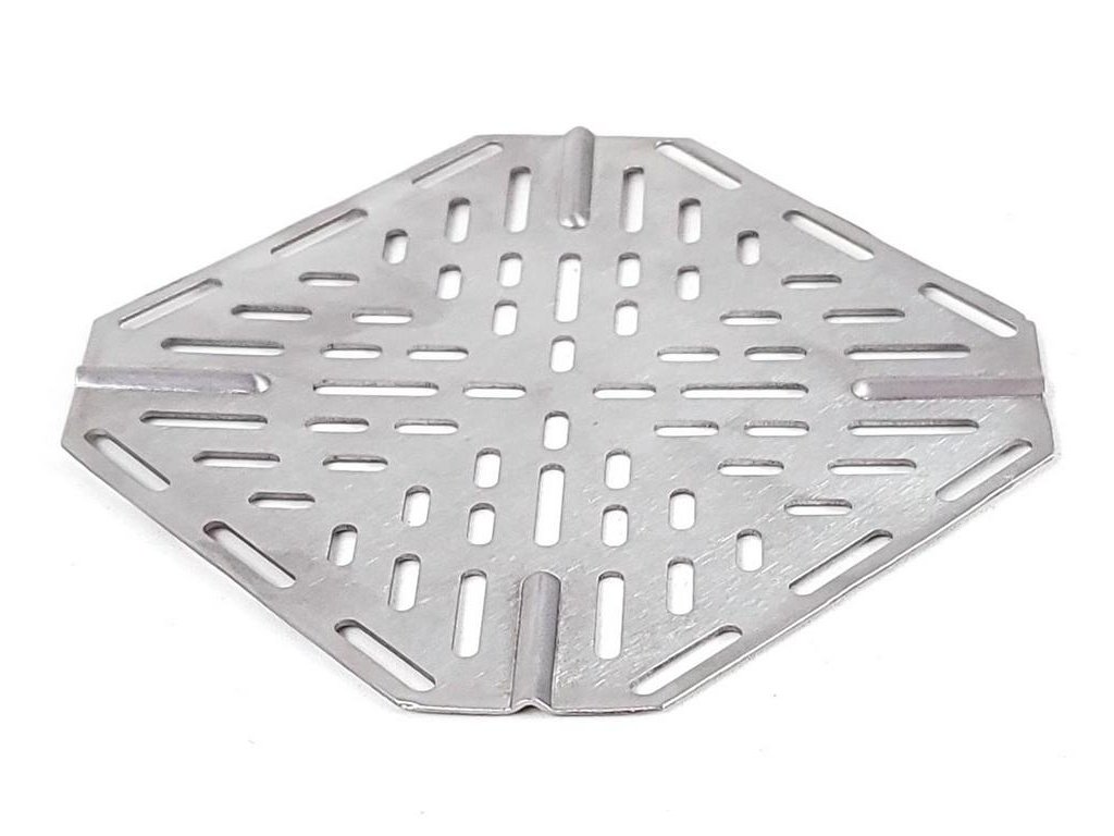 Nový gril pro Firebox Nano nebo Scout Stove. Hluboké rýhy v každém rohu zajišťují pevné uchycení na stojánku na hrnec Firebox Nano. Druhá strana se zapojuje do rohů Firebox Scout Stove. Díky pozicování je gril stabilní a zabraňuje klouzání, ale je třeba jej přidržovat, aby se nezvedal.