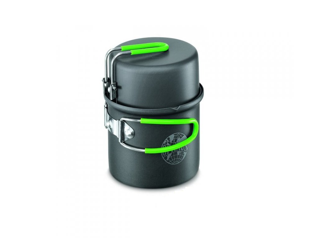 Sada nádobí z tvrdě anodizovaného hliníku s inovovaným nepřlnavým povrchem obsahující 0,6 l hrnec, pánev sloužící coby víko a síťovaný obal. Do sady lze pohodlně uložit plynovou kartuši (100g), hořák OPTIMUS Crux / Crux Lite a skládací spork.