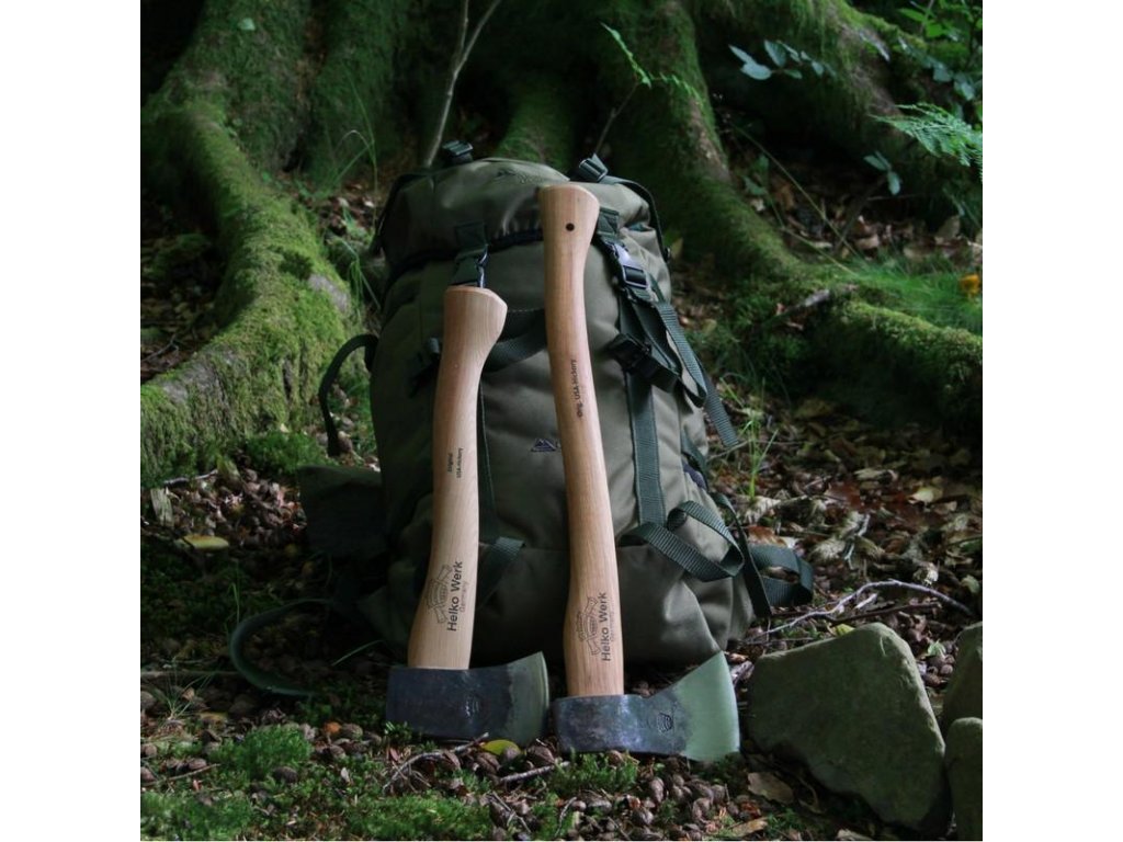 Black Forest Pack Axe je kompaktní, lehká a snadno se nosí při trekkingu v divočině. Je krásně řemeslně zpracována s tradiční širokou německou čepelí pro snadné zpracování dřeva.