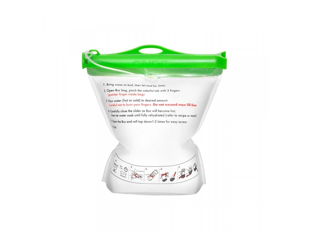 Optimalizujte svůj způsob ultralight vaření s udržitelným řešením: CNOC Nutrition Buc je sáček na jídlo pro vaření teplých jídel nebo přísad namáčených za studena, kterou lze používat opakovaně.