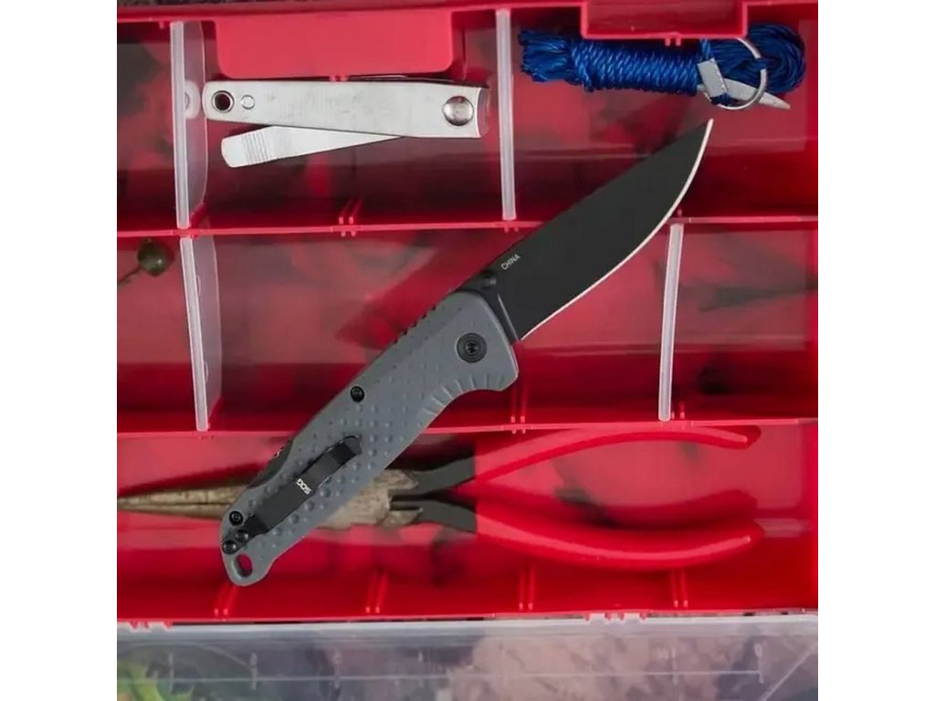 Rukojeť z GRN (Glass Reinforced Nylon) v kombinaci šedé/černé (Gray/Black) zajišťuje nízkou hmotnost i dostatek pevnosti pro každodenní použití.