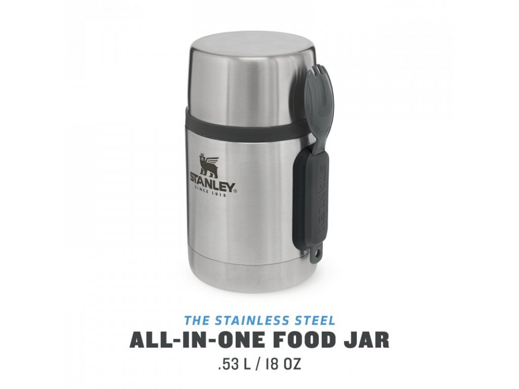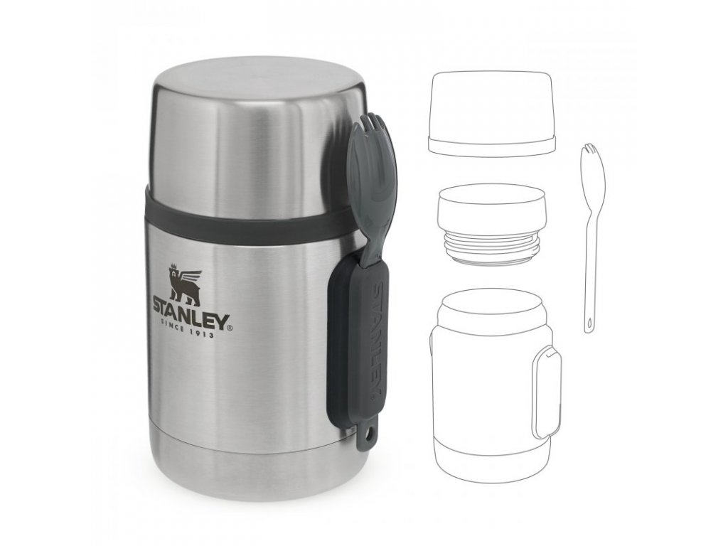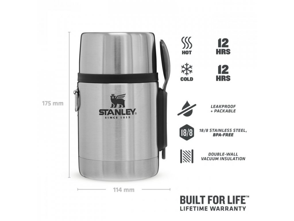 Velmi praktická k přepravě teplého nebo studeného jídla kdekoli na cestách je jídelní termoska značky STANLEY o objemu 0,5 l se lžící v praktickém úchytu. Díky této termosce uchováte své potraviny ve stálé teplotě ať už cestujete kamkoliv.