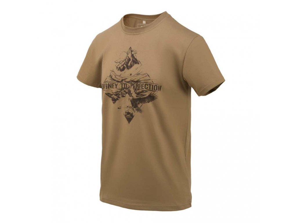 Ikonické tričko: oblečení EDC (pro každodenní nošení). Tričko Journey To Perfection odkazuje na dvě věci: outdoorové aktivity a jednu z ochranných známek značky Helikon-Tex.
