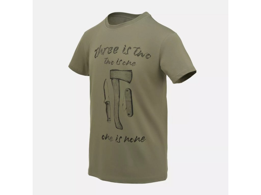 V přírodě platí jednoduché pravidlo: "One is none, two is one." Pokud máš jen jednu sekeru a ta se zlomí, jsi bez nástroje. Proto je důležité mít zálohu. Toto tričko od Helikon-Tex ti připomene, že připravenost je klíčem k přežití.