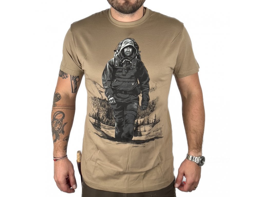 Tričko s potiskem motivu BUSHCRAFT pro všechny vyznavače tohoto směru a milovníky přírody a toulání se v ní.