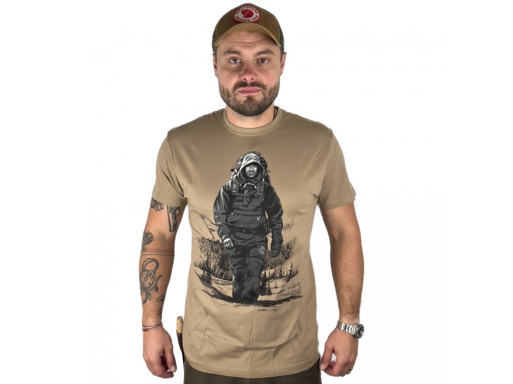 Tričko JUBÖ BUSHCRAFT Bushcrafťák - pískové