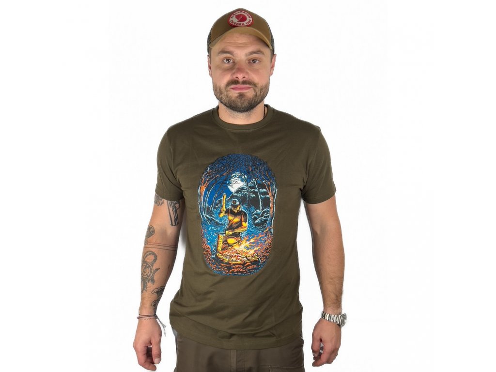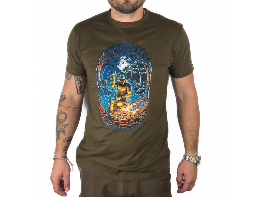 Nové tričko s detailním barevným potiskem našeho Bushcrafťáka.