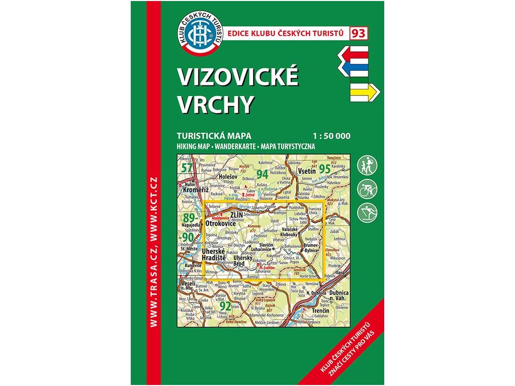 Mapa č. 93 Vizovické vrchy. Zdejší krajinu a život ovlivnil podstatným způsobem nástup průmyslu v 19. stol., zvláště pak působení Tomáše Bati se zásadním vlivem na rozvoj Zlína a širokého okolí.