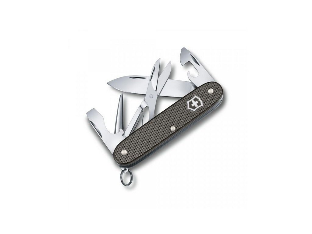 - Švýcarský kapesní nůž s embosovanými a eloxovanými odolnými hliníkovými střenkami a 9 funkcemi