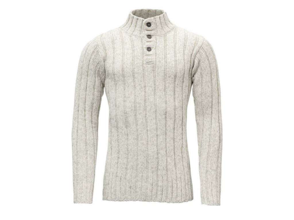 Vlněný svetr se stojáčkem DEVOLD Nansen Wool Button Neck - Grey Melange