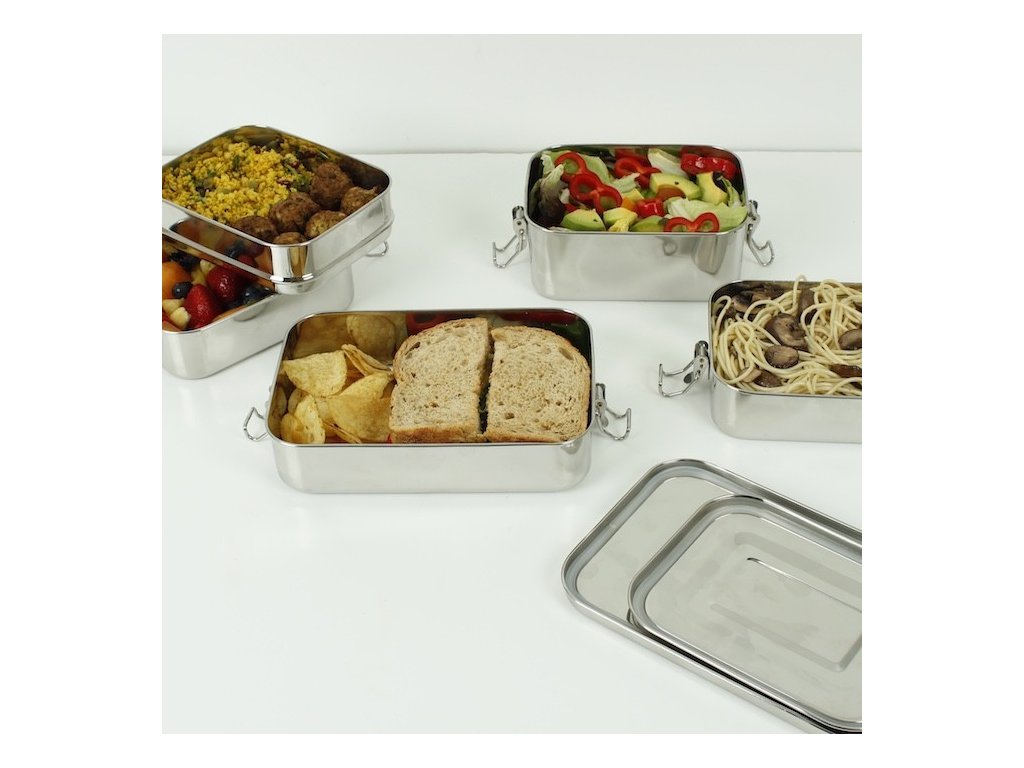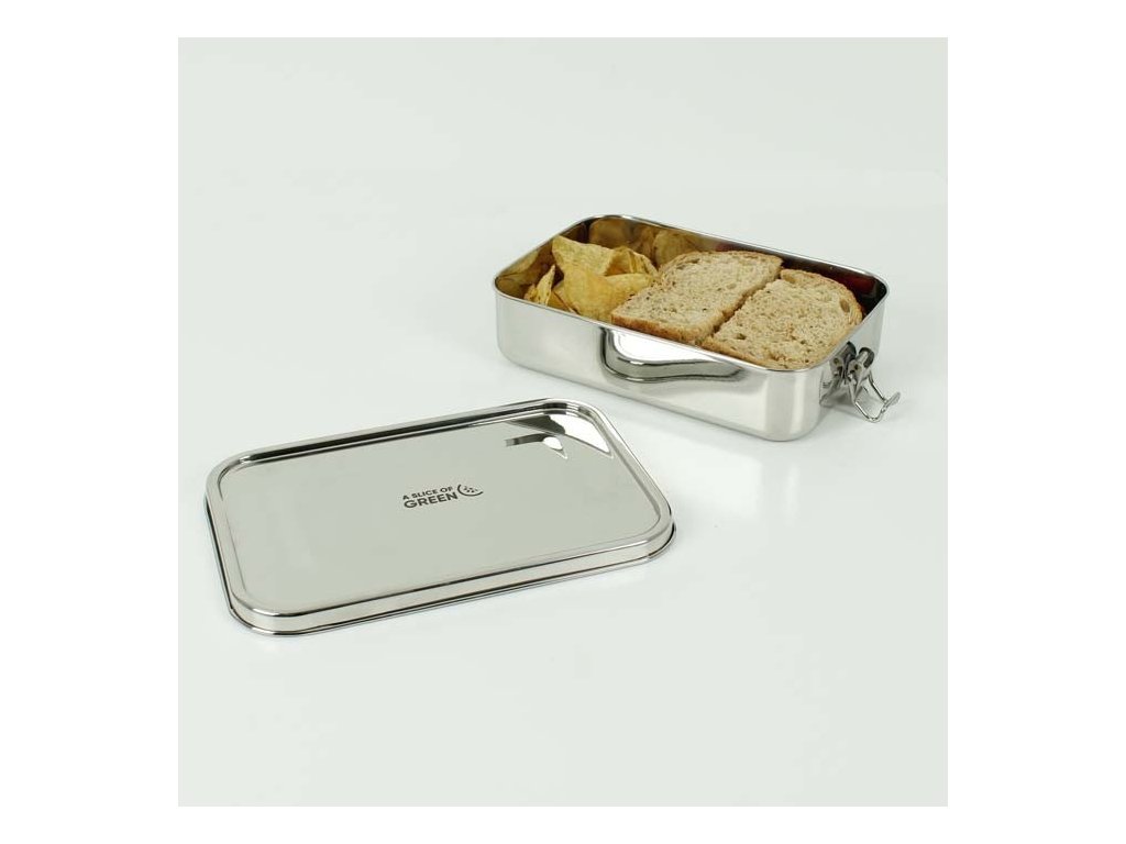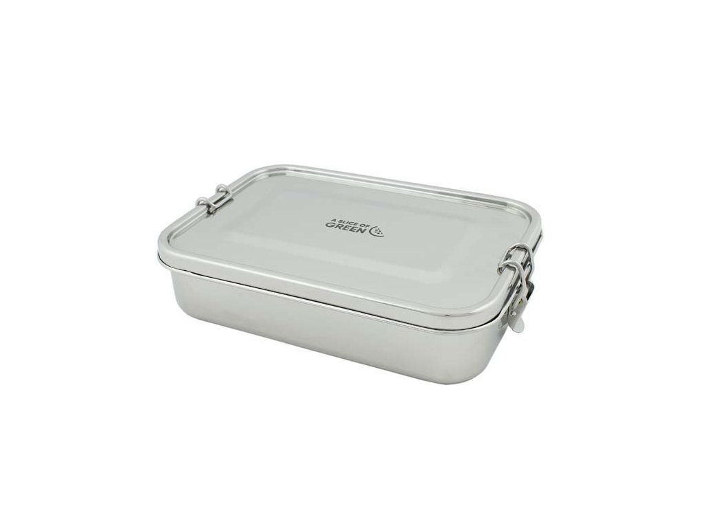 Vodotěsné nádoby Slice of Green řady LUNCH BOX  jsou skvělé pro přepravu dokonce i vodnatých potravin, omáček, kaší apod. do práce, do školy, na cestách, do kempu na tůru, výpravu nebo kemping. Každá krabička LUNCH BOX má zaoblené hrany, silikonové těsnění a silné spony, které drží víko zavřené a zajišťuje vodotěsnost! Jsou vyrobeny z vysoce kvalitní potravinářské silnostěnné nerezové oceli 201, která je netoxická a nezachytá ani nepředává pachy a je zejména vhodná pro uchování potravin, protože obsah nepřijde do kontaktu z žádným plastem.