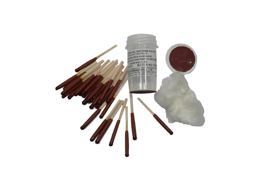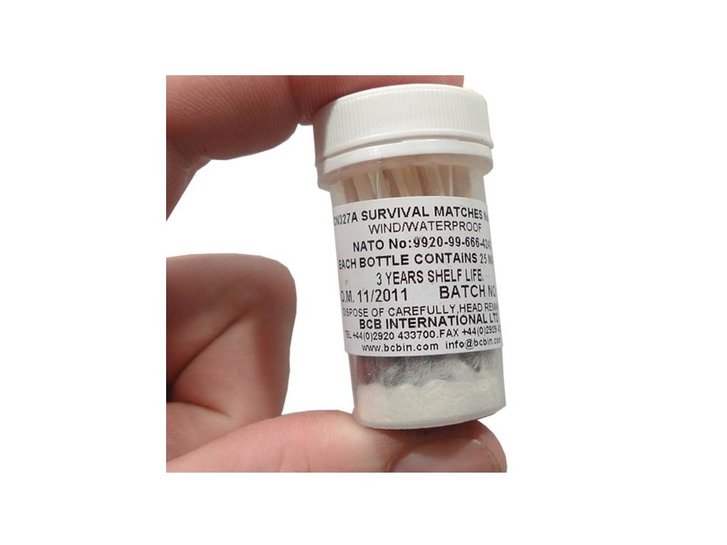 extra dlouhé hlavy, které hoří i v silném větru a dešti, nesfouknutelnéuloženy ve vodotěsném pouzdře, 25 ks zápalek + škrtátkoschválený asociací GSA a používány jednotkami NATO, vhodné do KPZ (krabiček poslední záchrany) a survival setů.